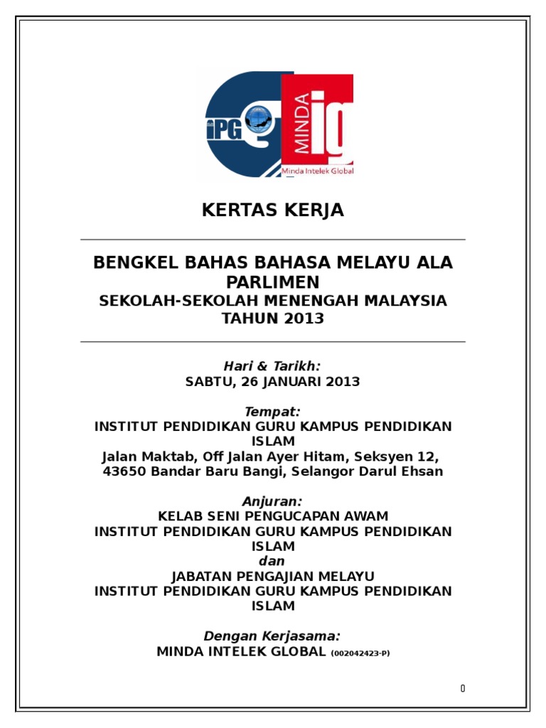 Bengkel Bahas Bahasa Melayu Ala Parlimen Ipgkpi 2013 Pdf